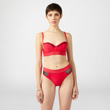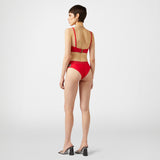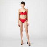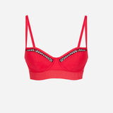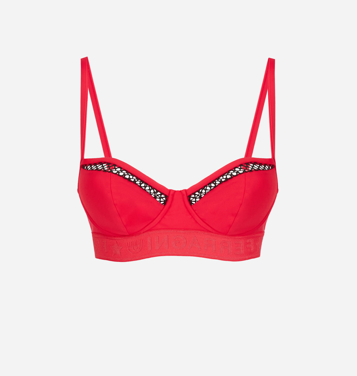 Red bikini top, push-up model with mesh details and logoed elastic band