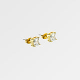 Lobe earrings with square white cubic zirconia on 18k gold-plated setting.