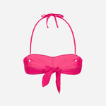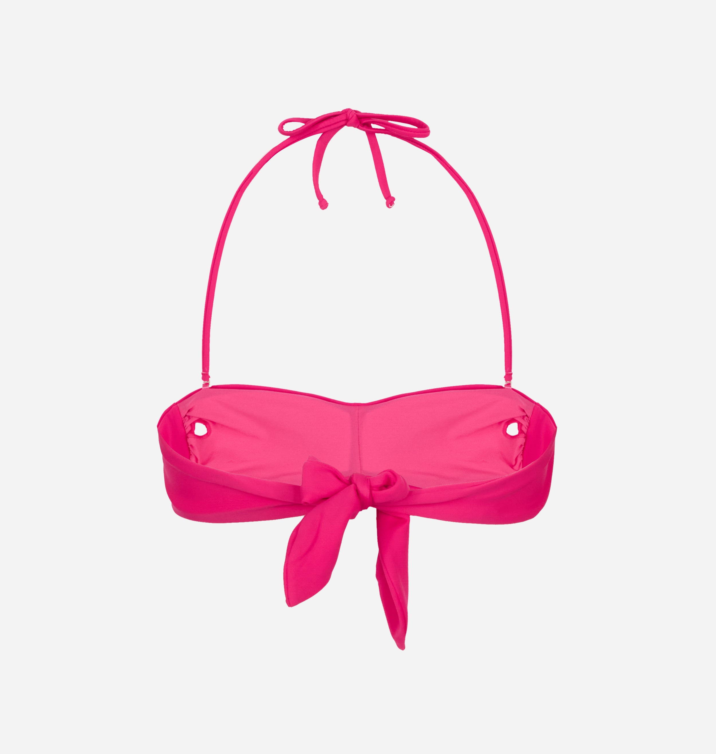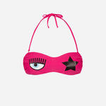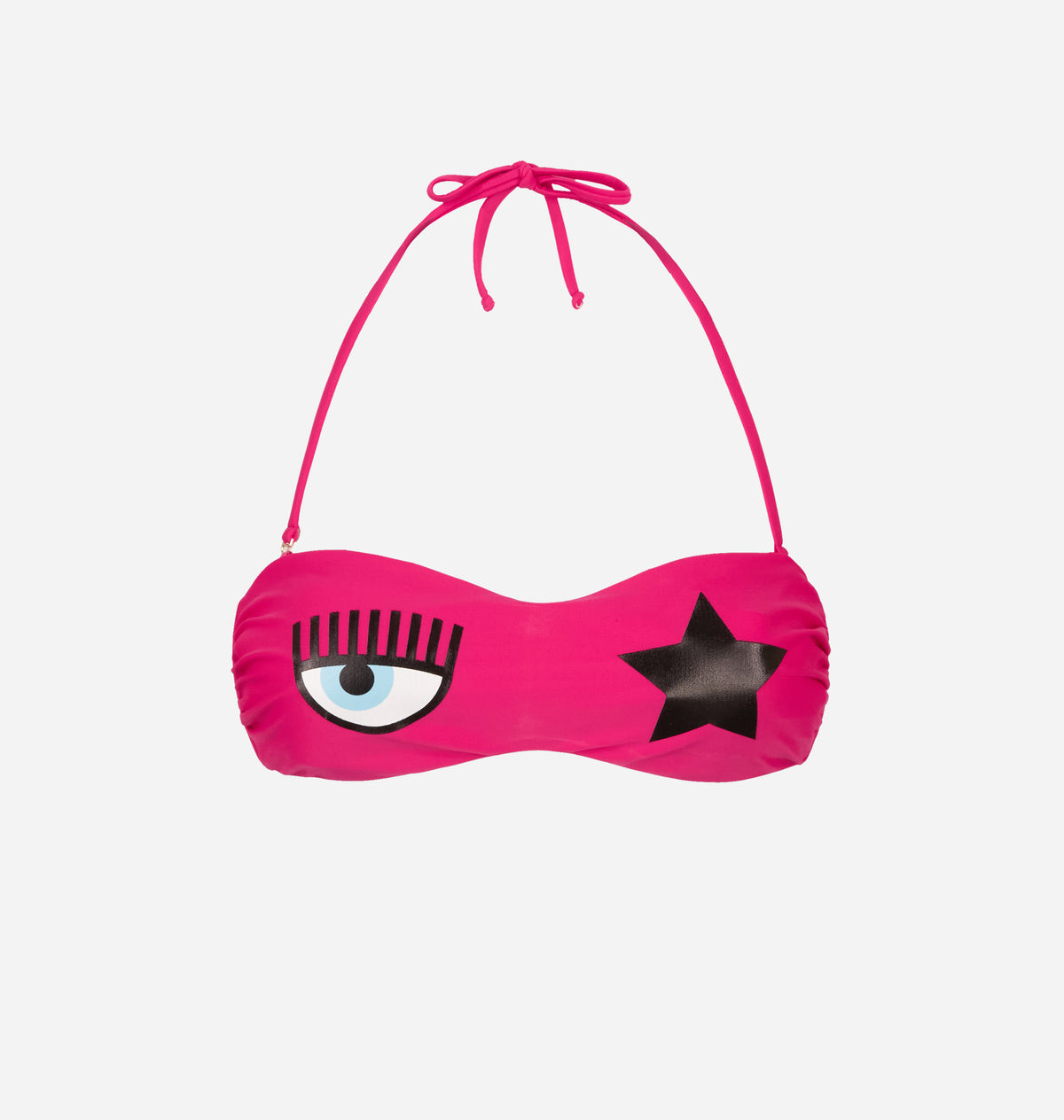 Fuchsia bikini top, lightly padded bandeau model with Eye Star print. Removable straps
