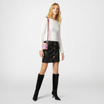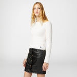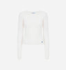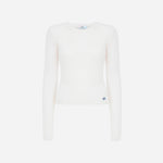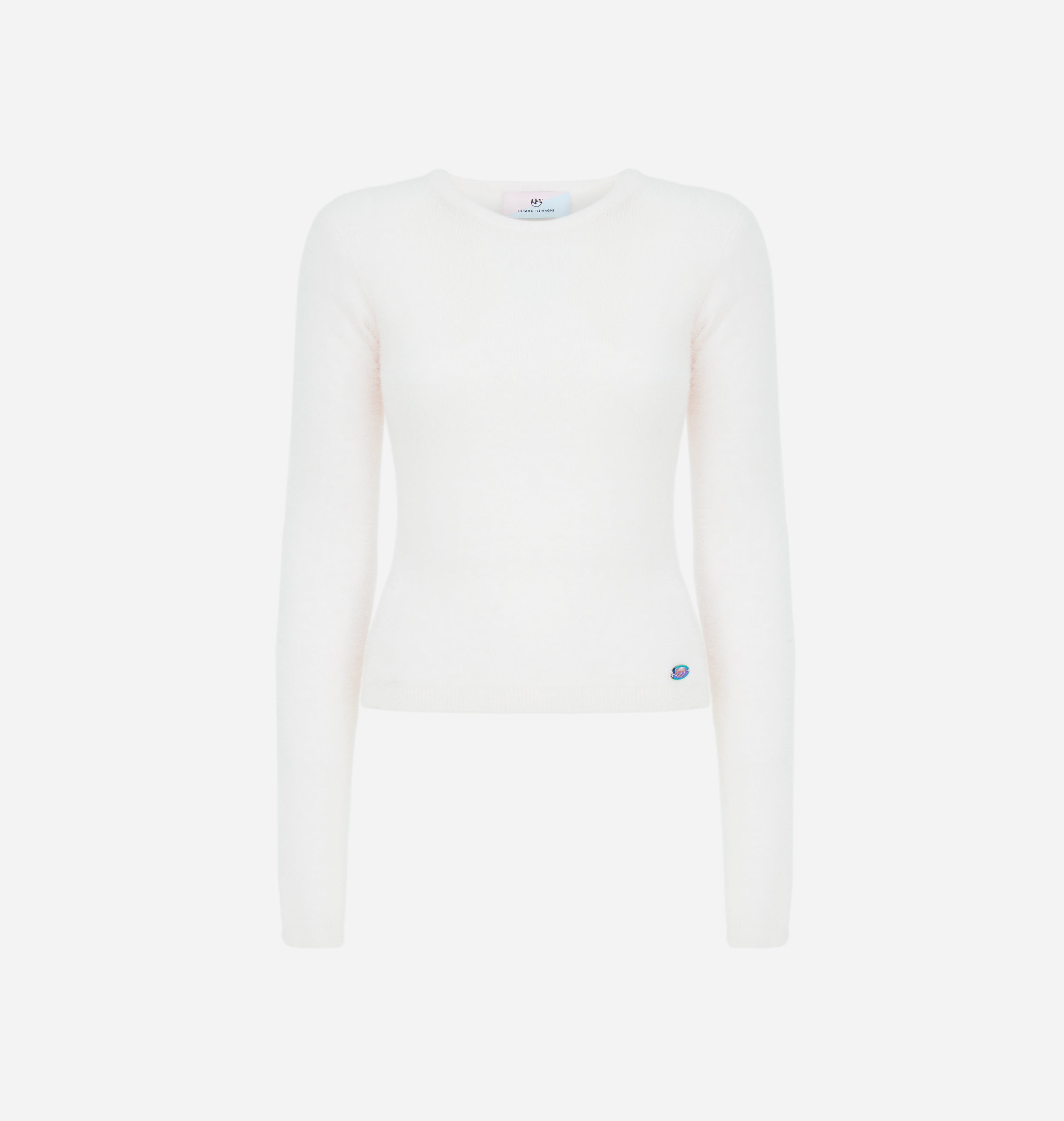 Long-sleeved crew-neck jumper in soft furry fabric with iridescent logo tag