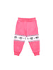 Fuchsia jogger with Maxi Logomania band at knee height.