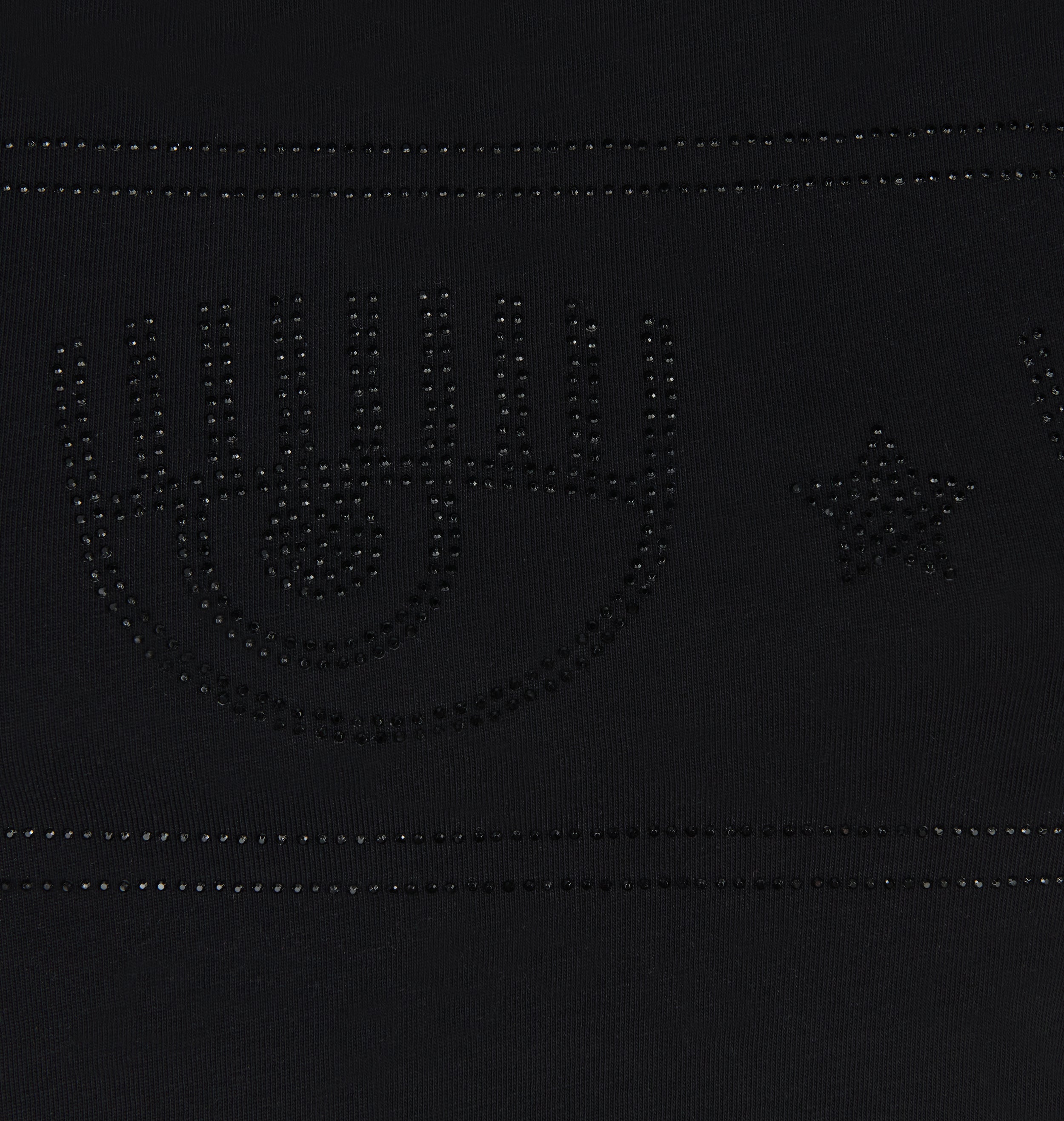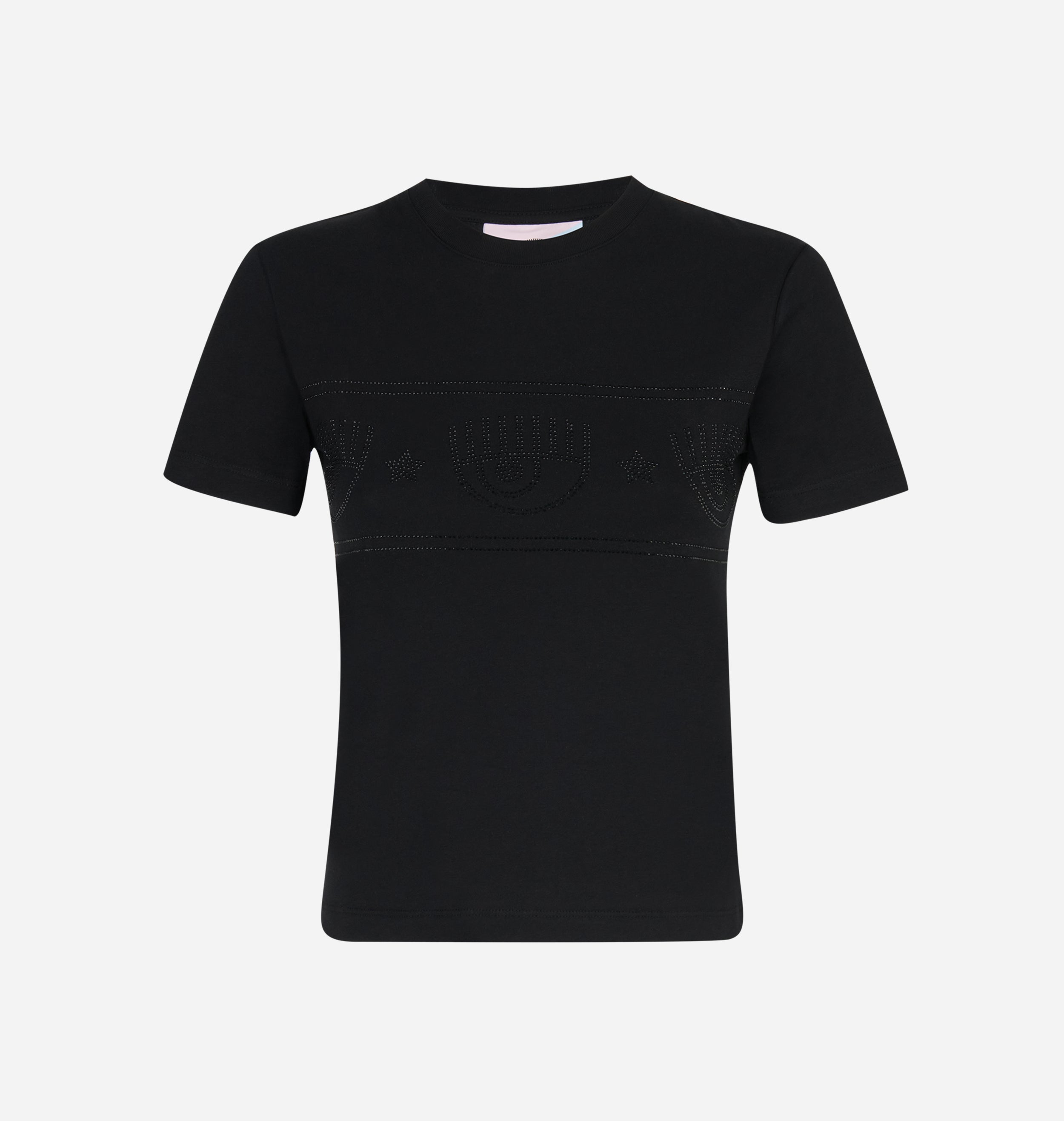 Nero cotton slim fit T-shirt with rhinestone Maxi Logomania band