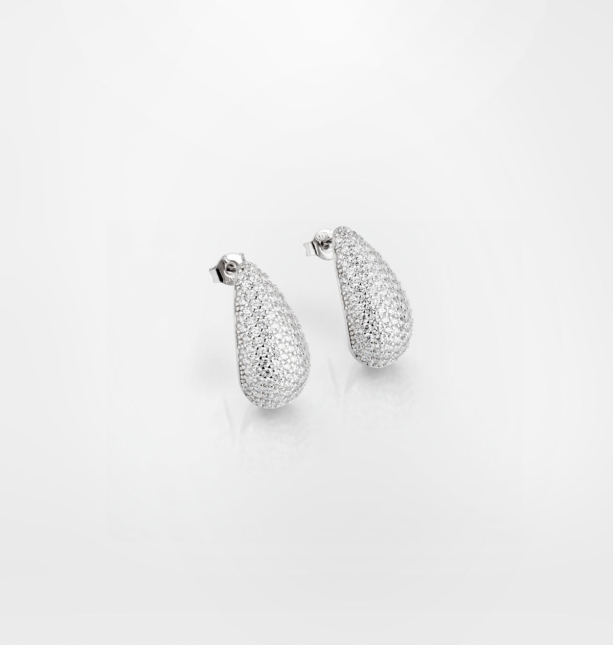 Big drop shaped earrings made of 925 sterling silver with a white cubic zirconia pave.