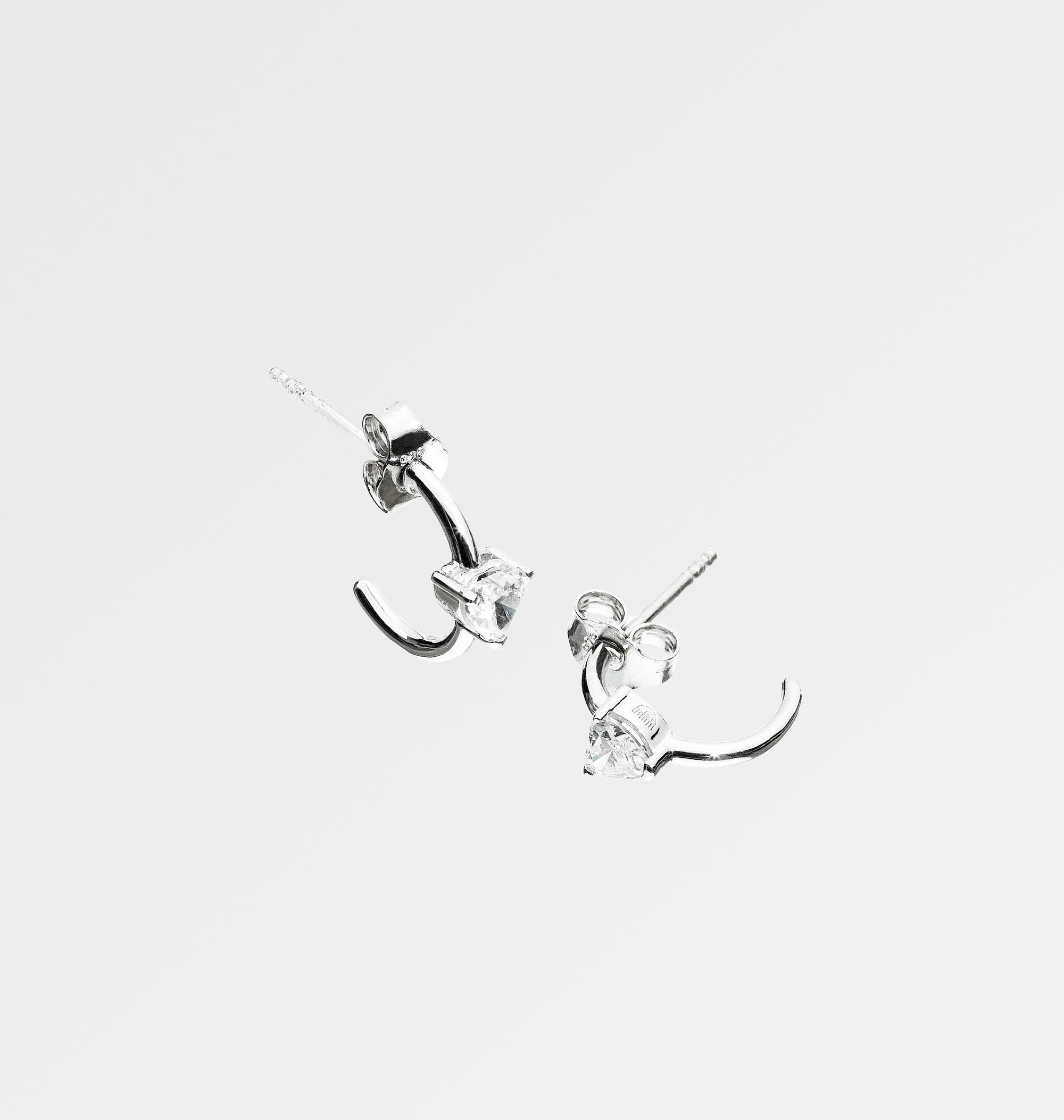 Hoop earrings made of 925 sterling silver with a white heart-shaped zircon.