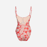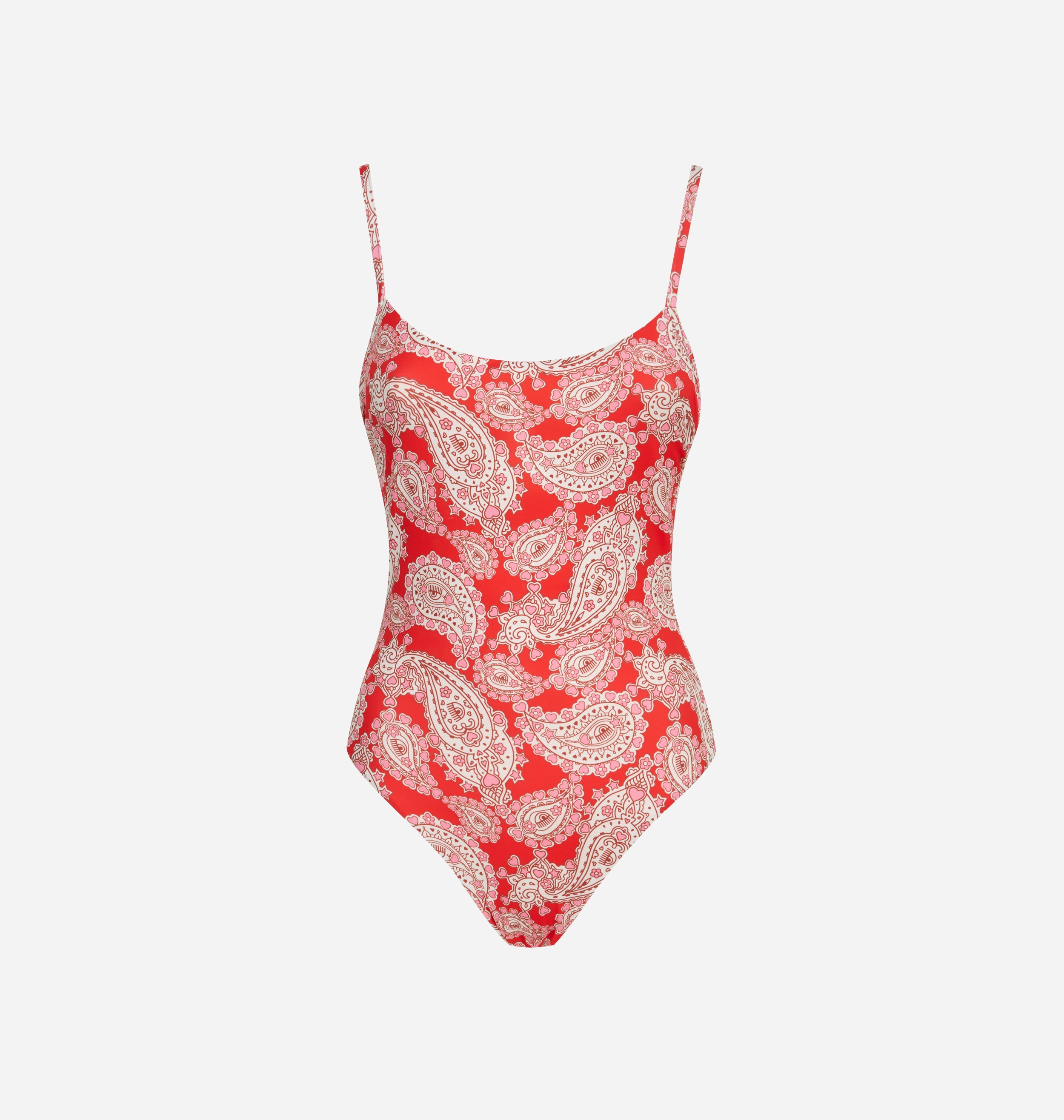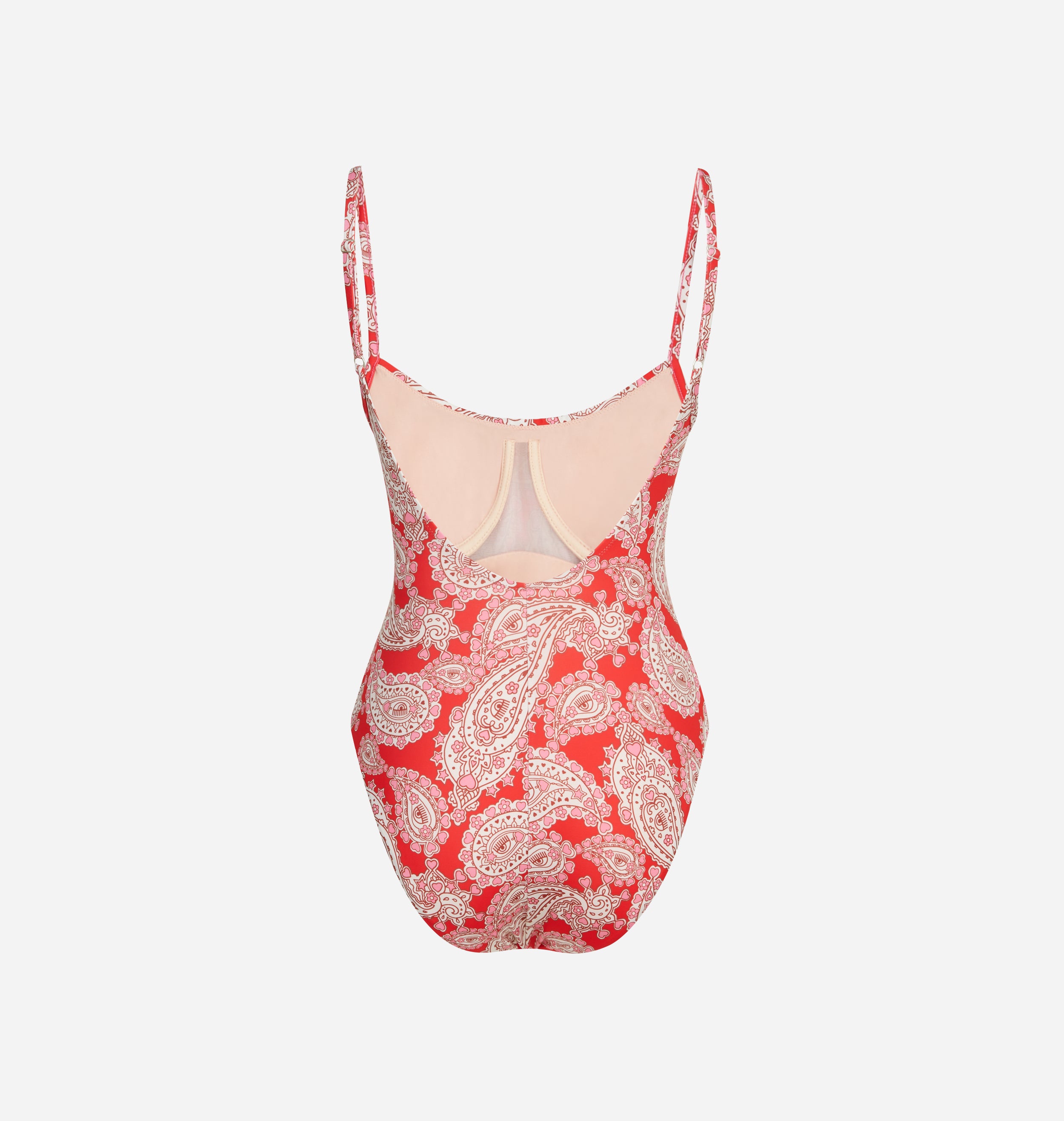 ONE-PIECE SWIMSUIT WITH PLUNGE BACK AND PAISLEY PATTERN ON THE FRONT