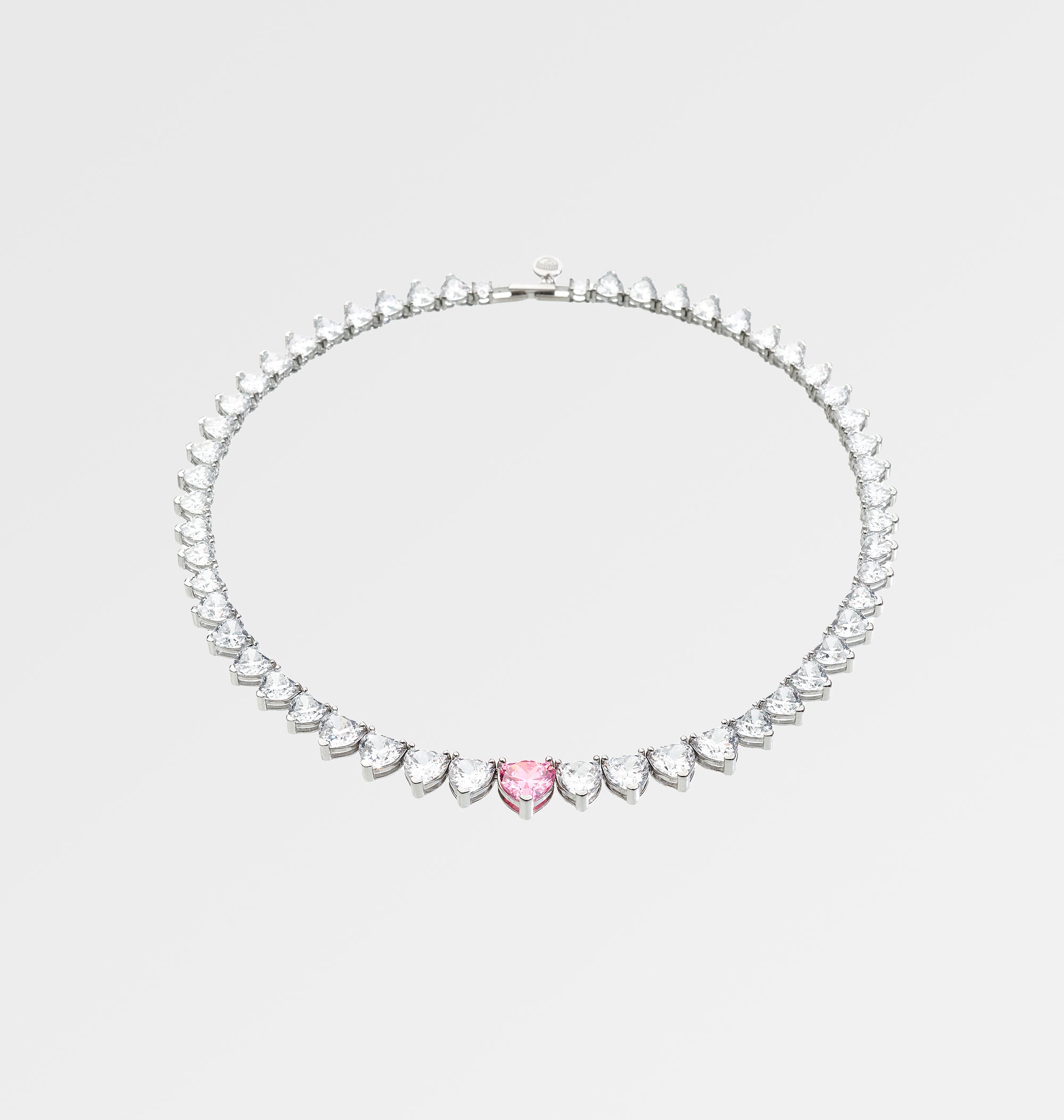 Choker with white heart-shaped cubic zirconia and pink central stone. Made of Rhodium. Dim. 38.5+1cm