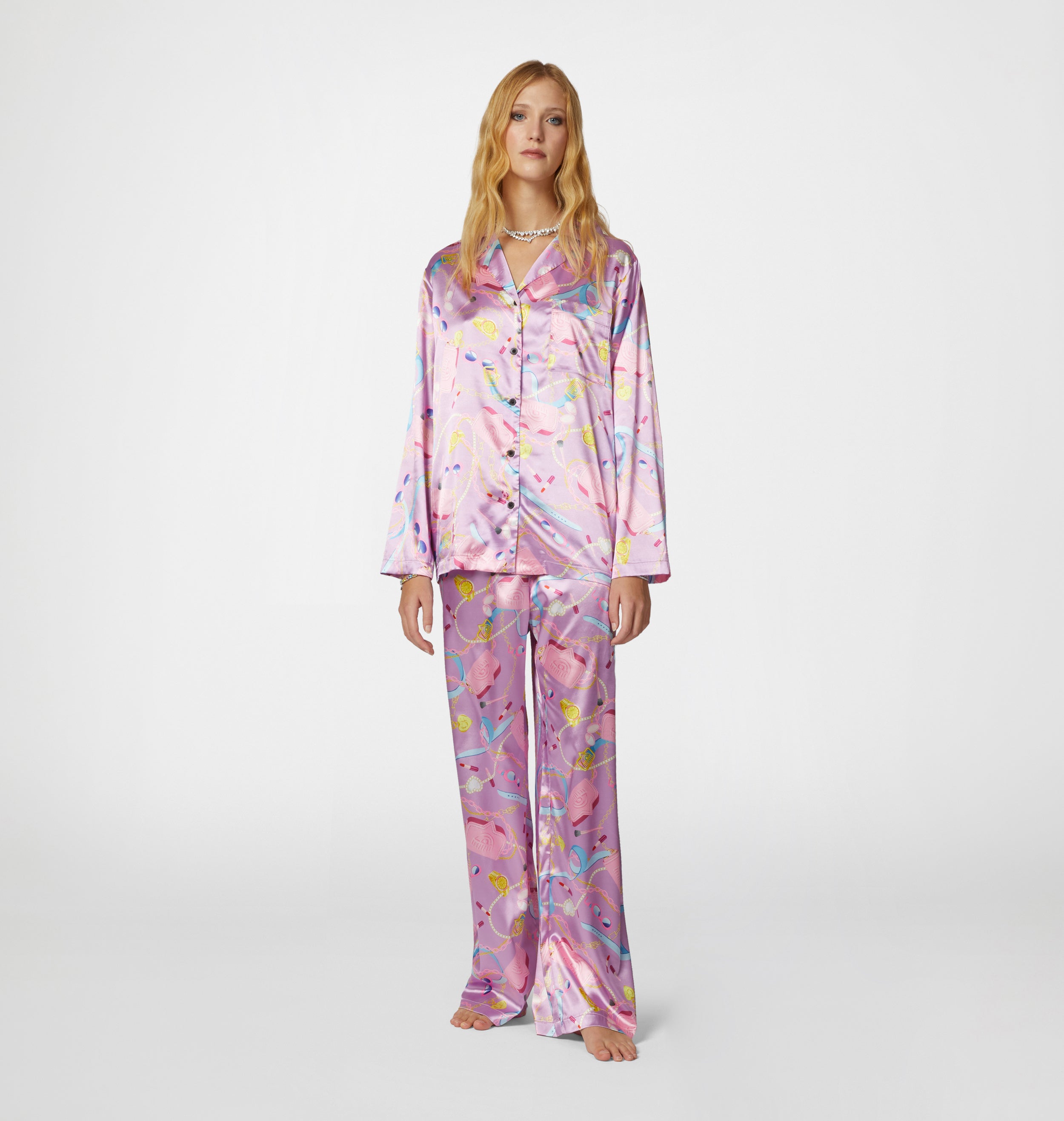 Liliac long pyjamas in CF Iconic print with front opening and button fastening