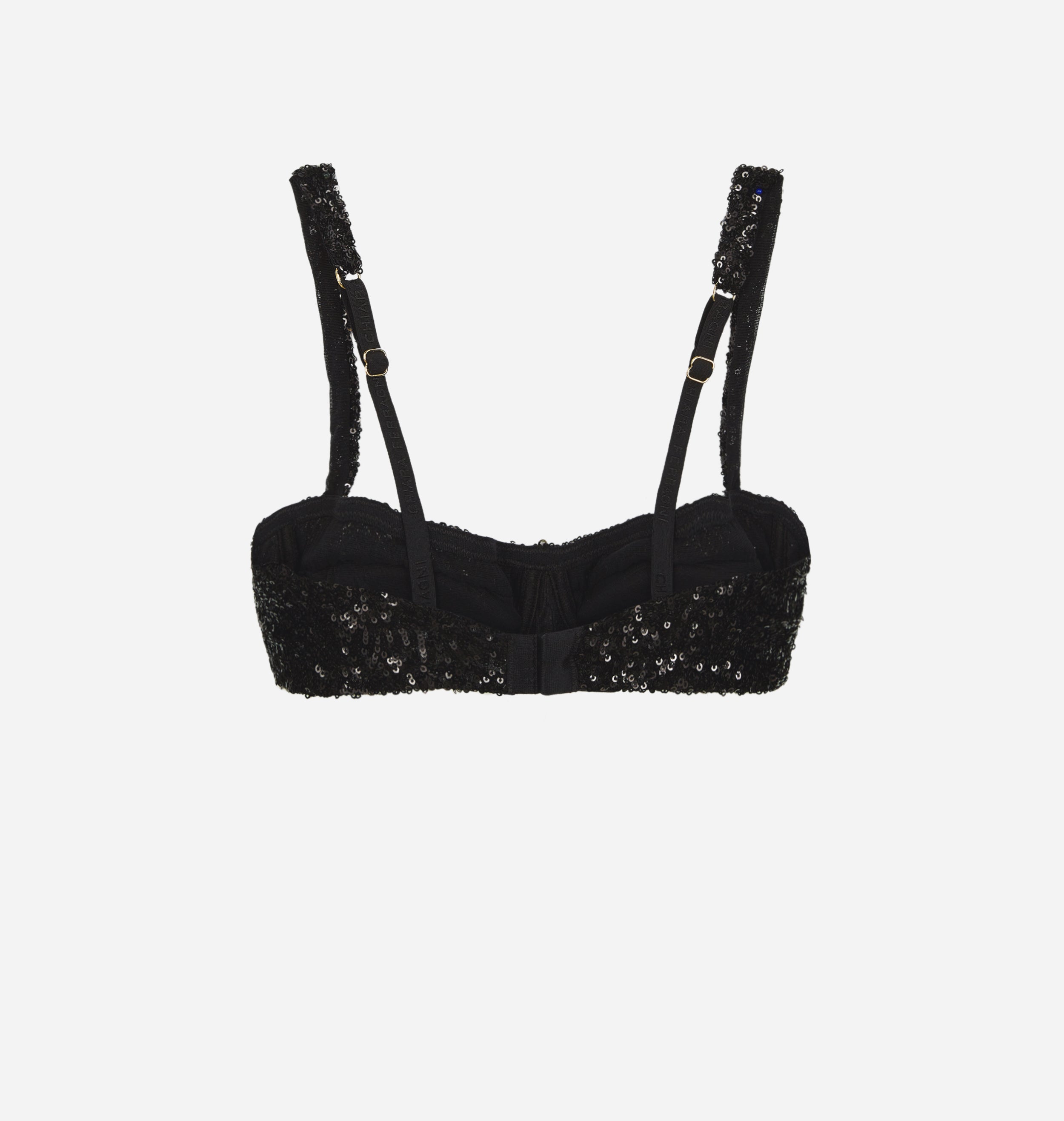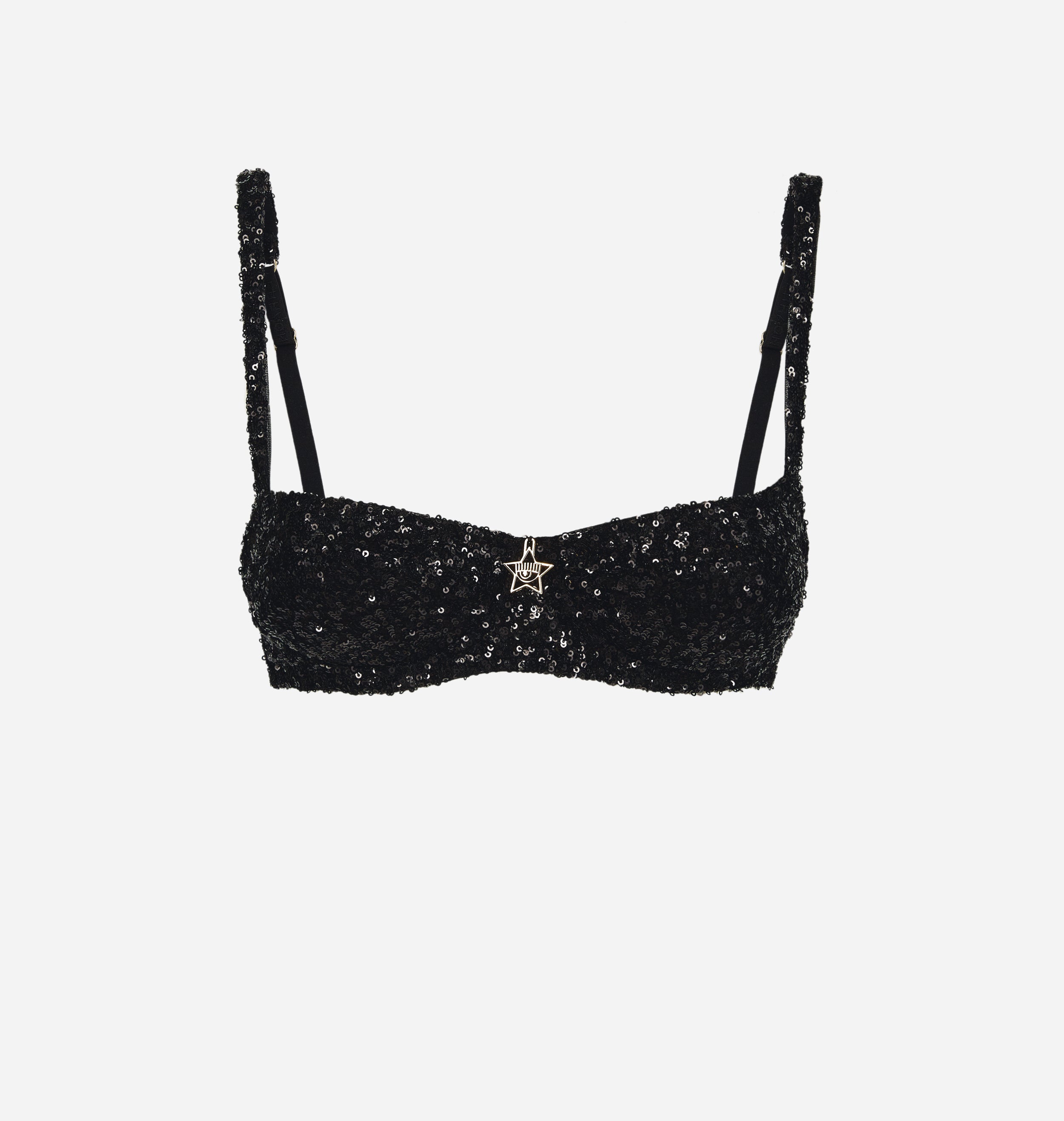 Black sequin balconette bra with Eye Star charm detail and removable padding