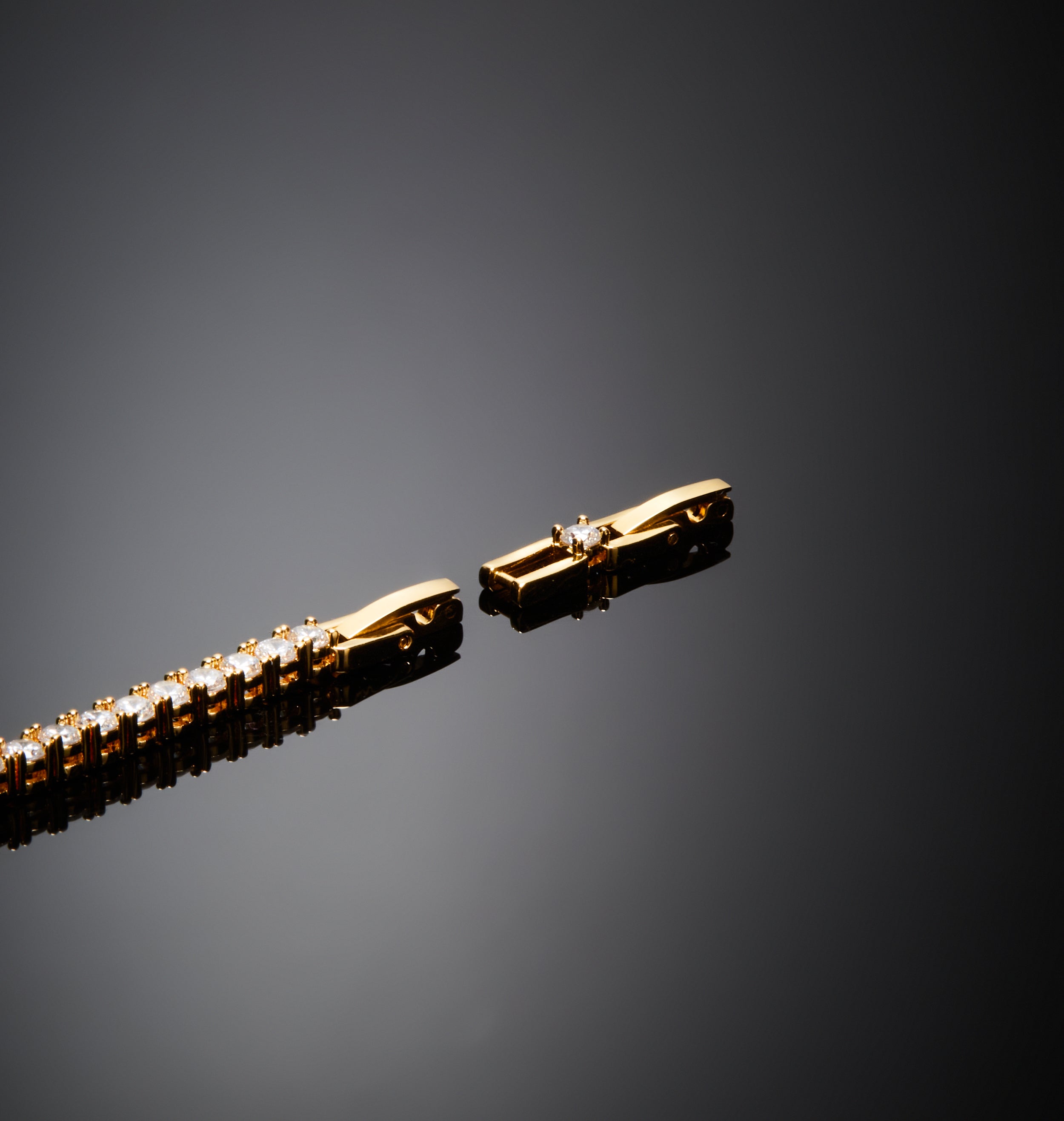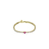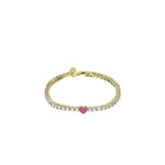 Tennis bracelet with cubic zirconia and central enamelled heart, made of 18K gold-plated rhodium.