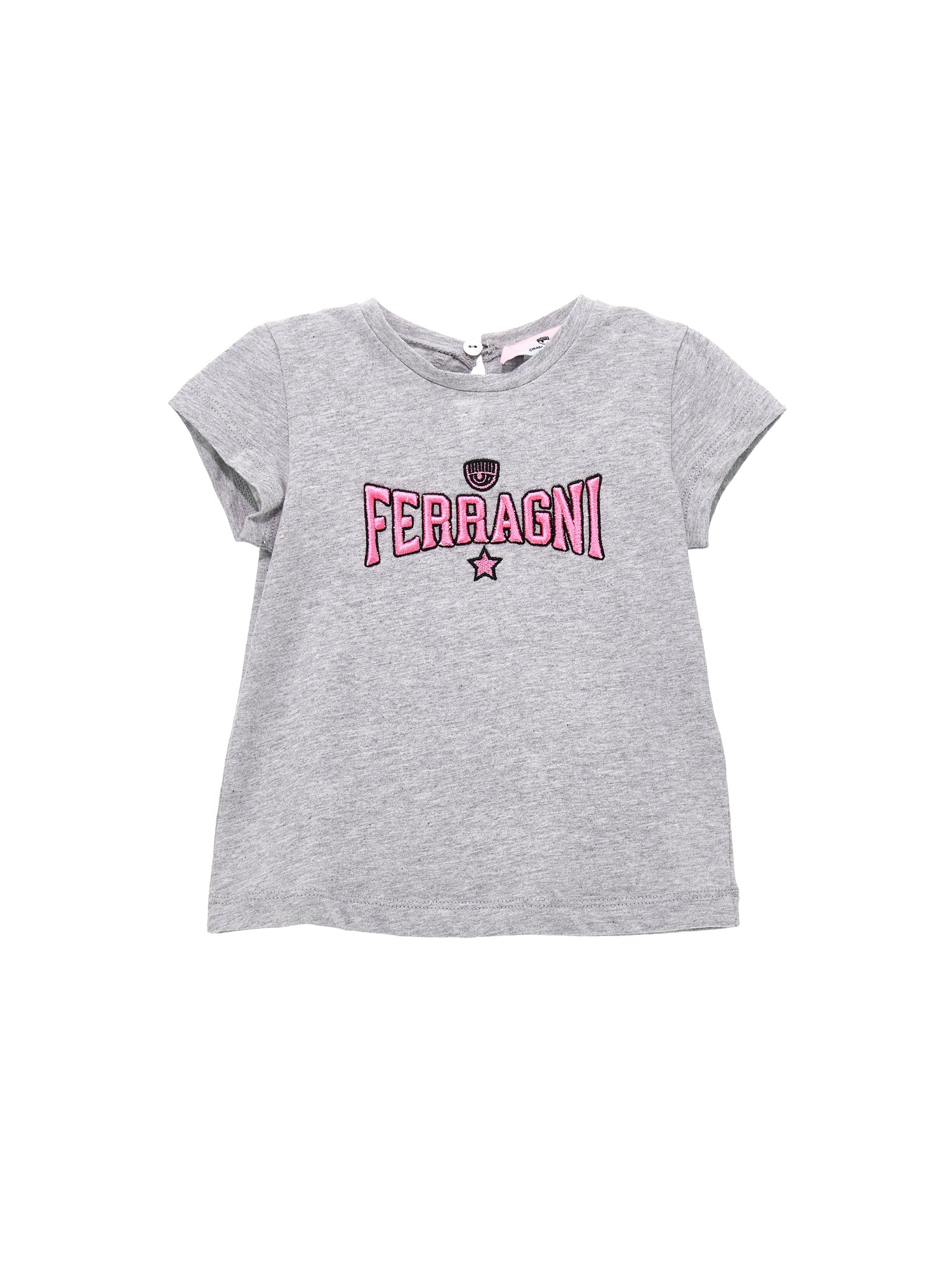 Grey T-shirt with Ferragni Stretch logo.