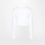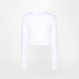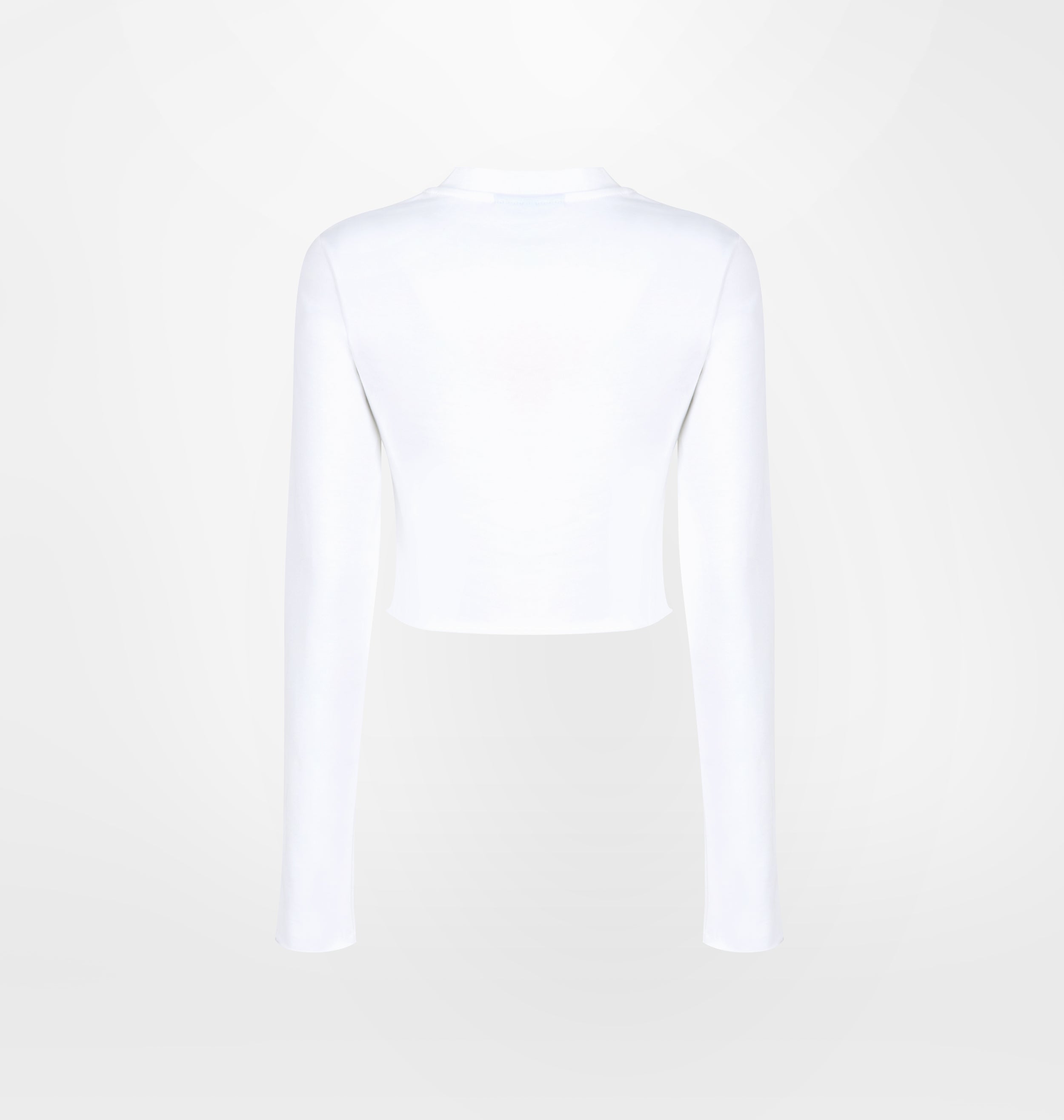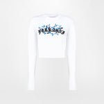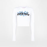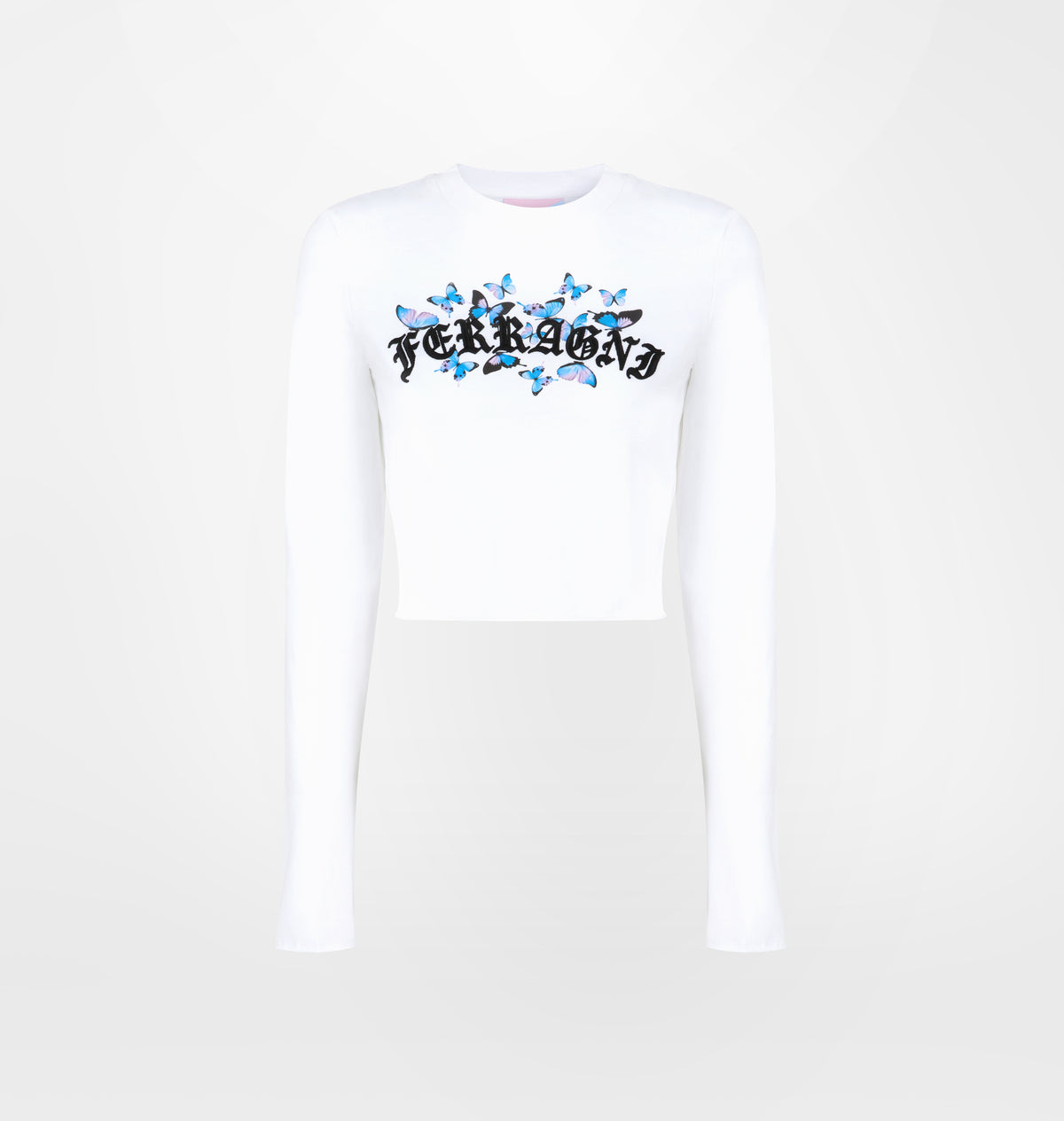 White long-sleeved crop t-shirt with Gothic Butterflies graphic on the front.