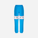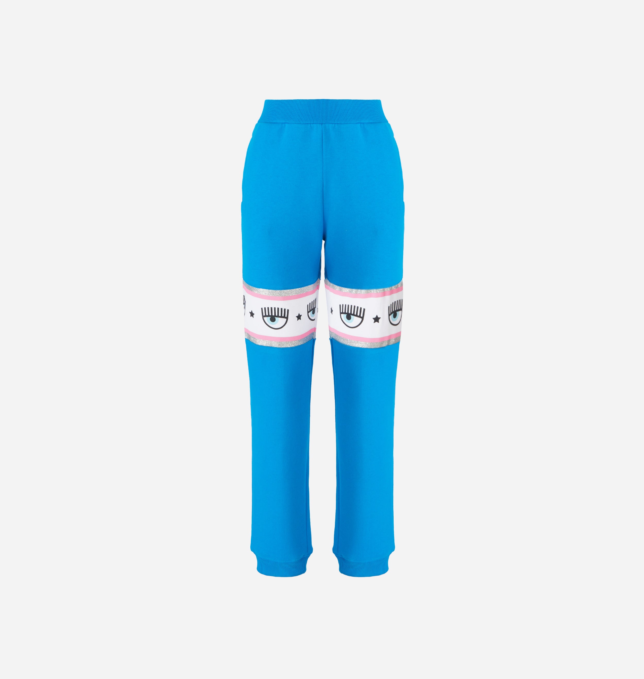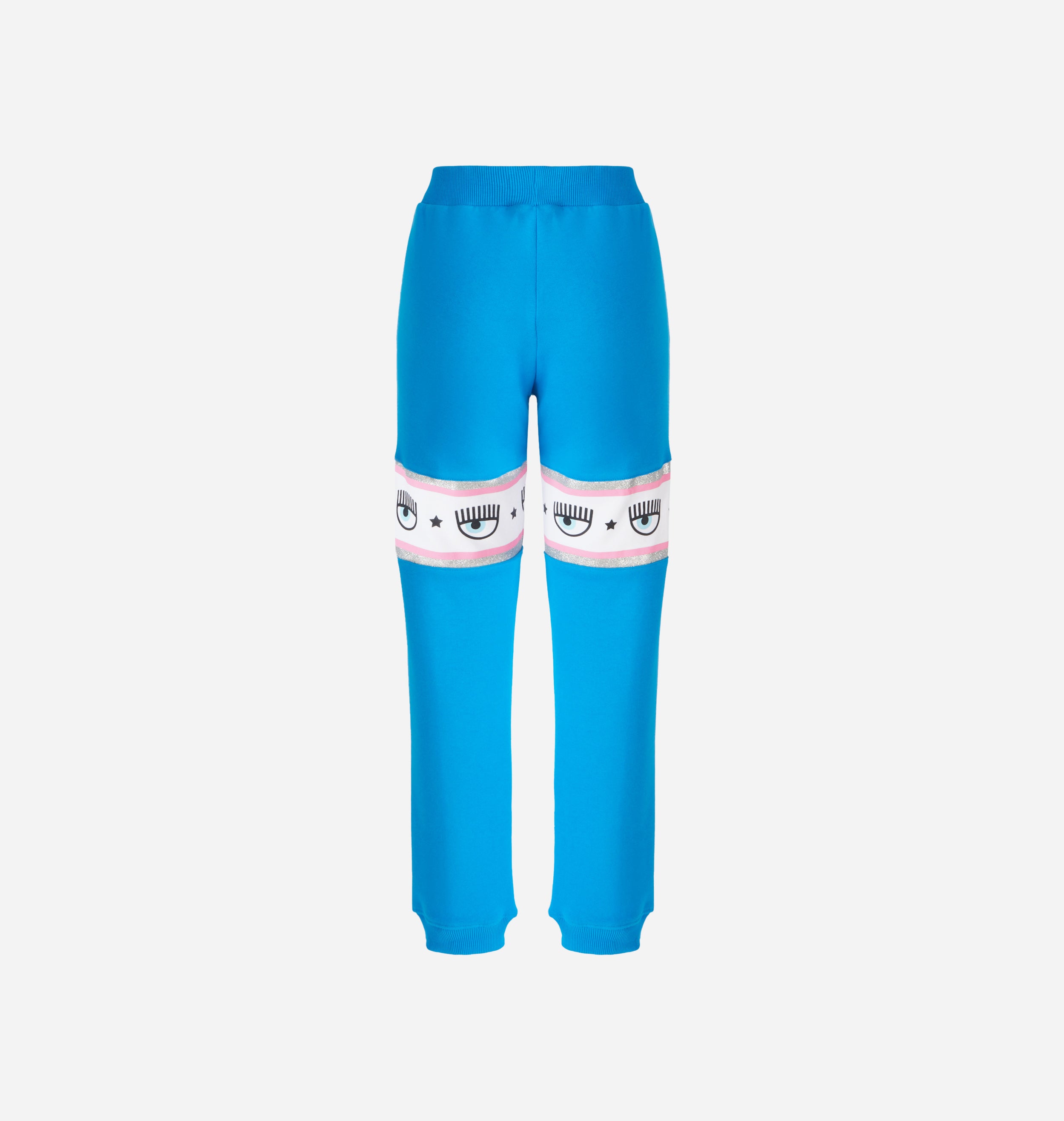 Blue cotton joggers with Maxi Logomania band at knee height.