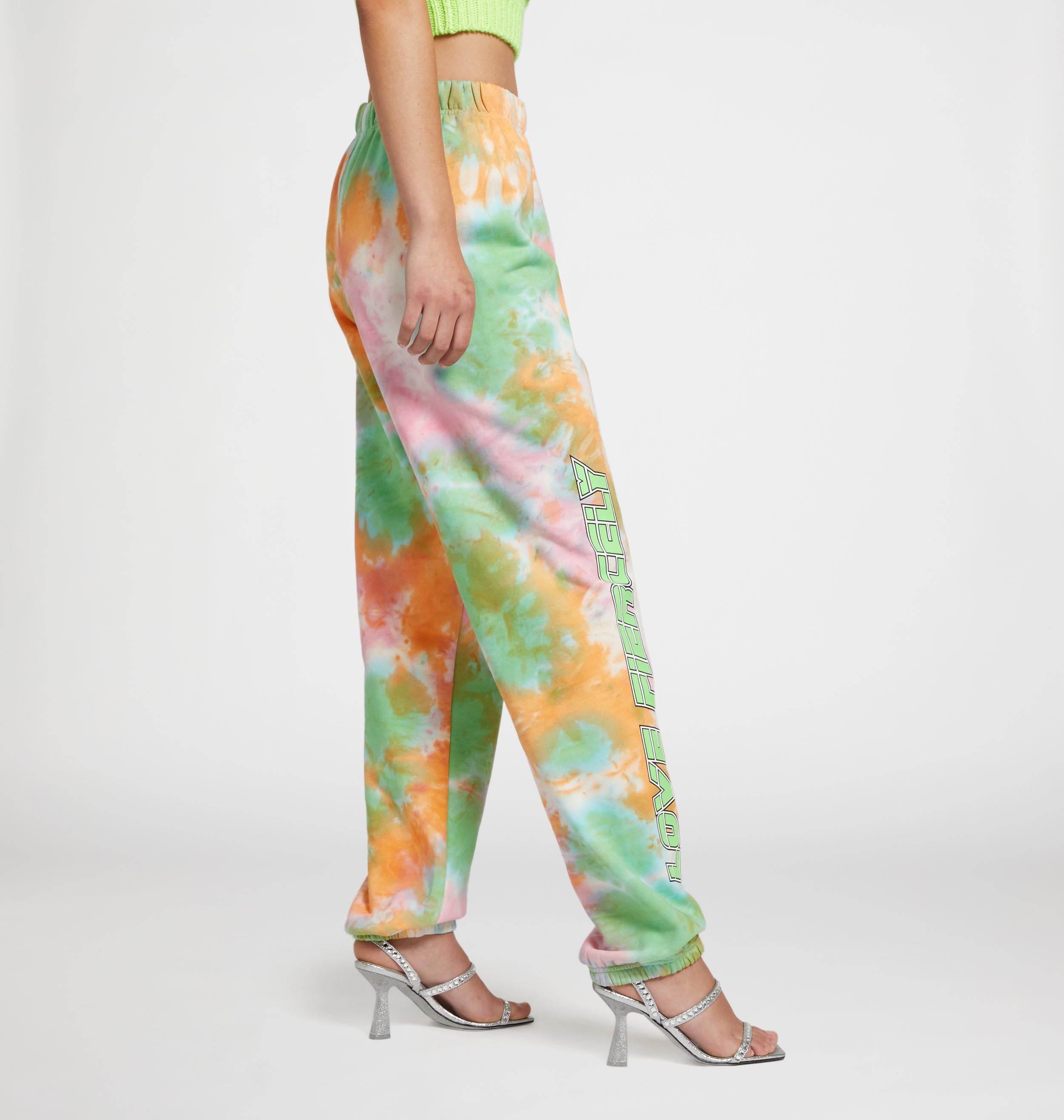 Tie-dye fleece joggers with Logomania side band. Front pockets and elastic waistband.