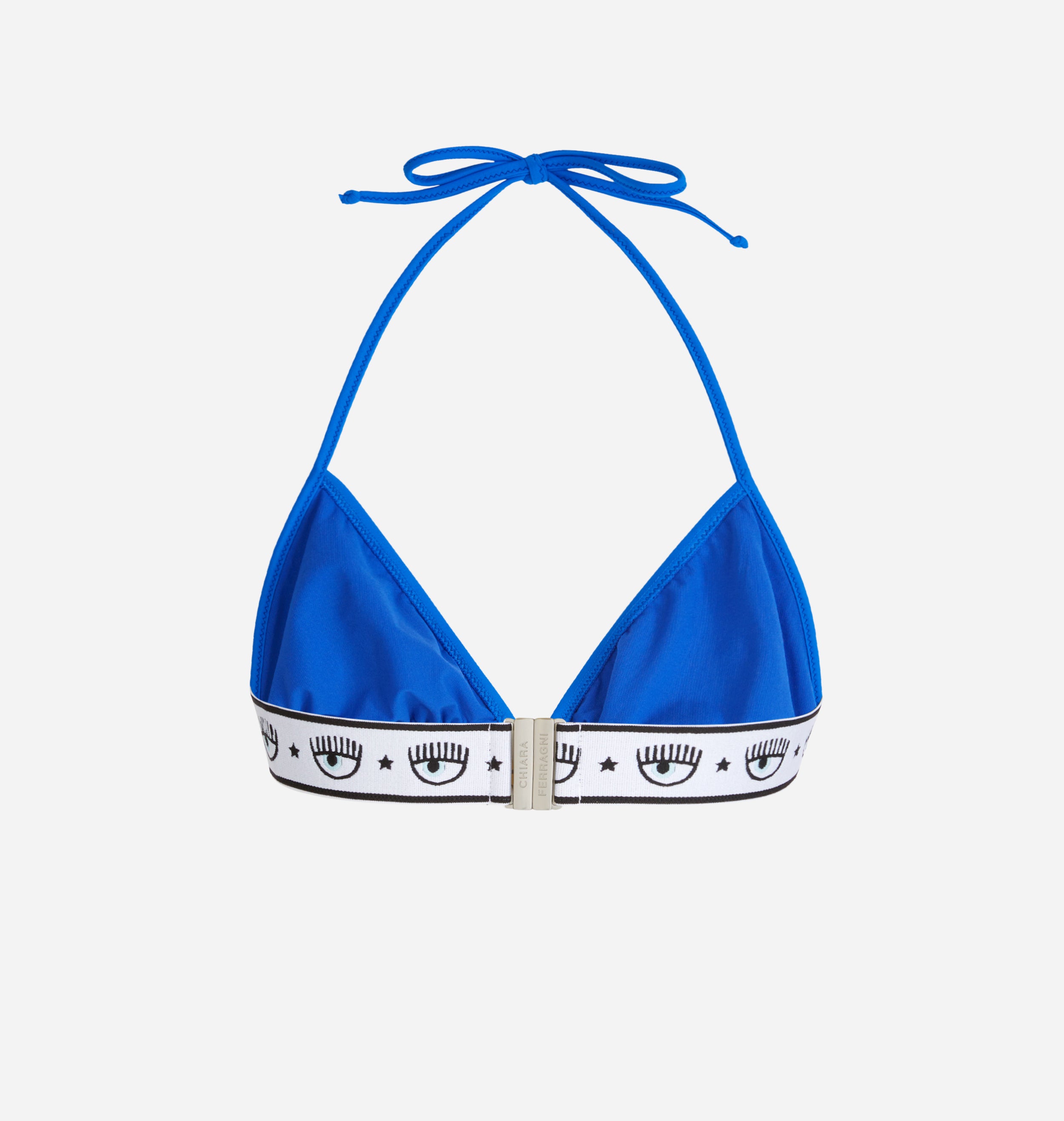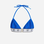 Blue triangle bikini top with Maxi Logomania elastic band under the bust