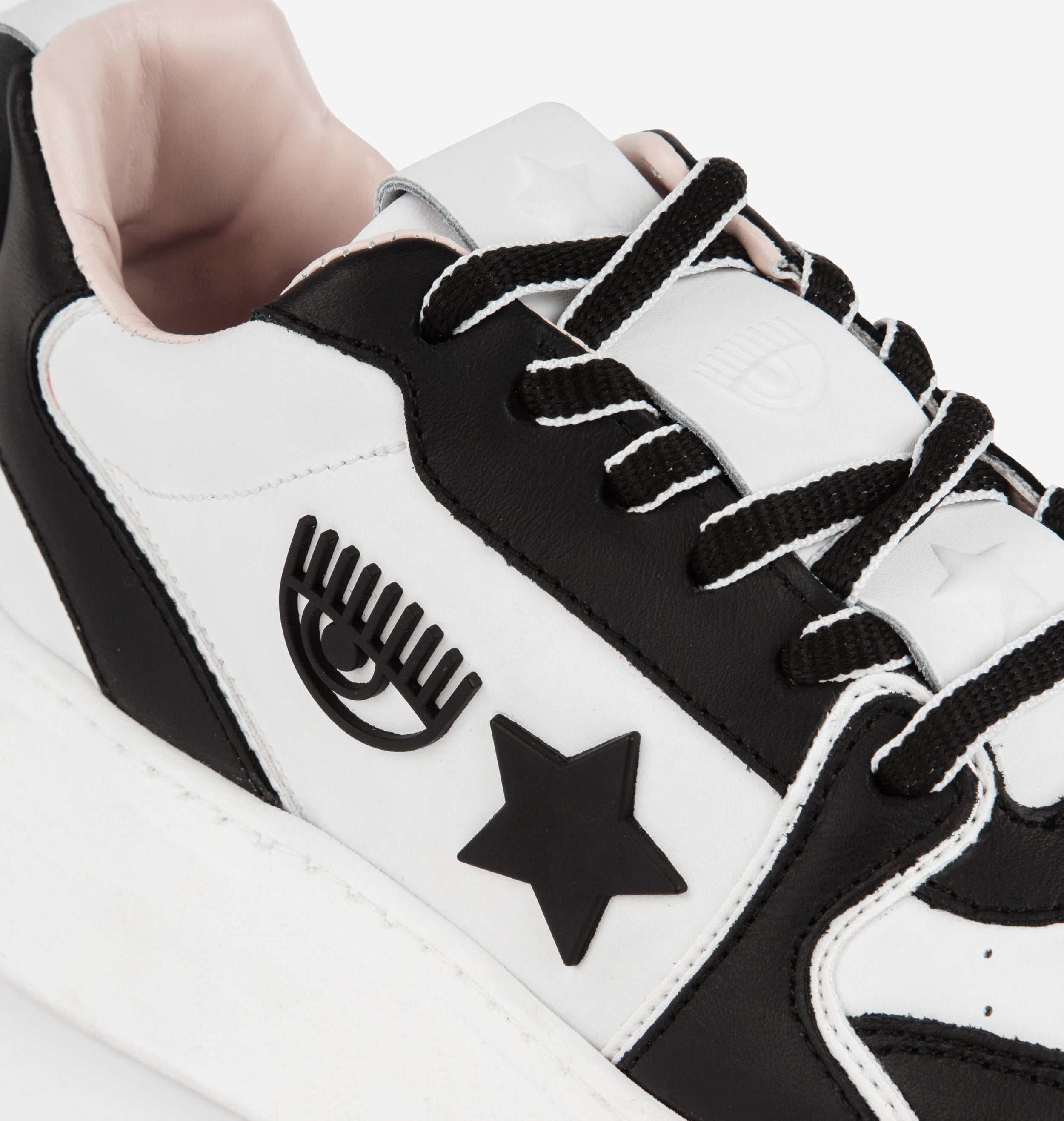CF School sneakers in pelle bianca con dettagli neri. Para 4cm. Logo Eye Star sui lati. Made in Italy.