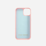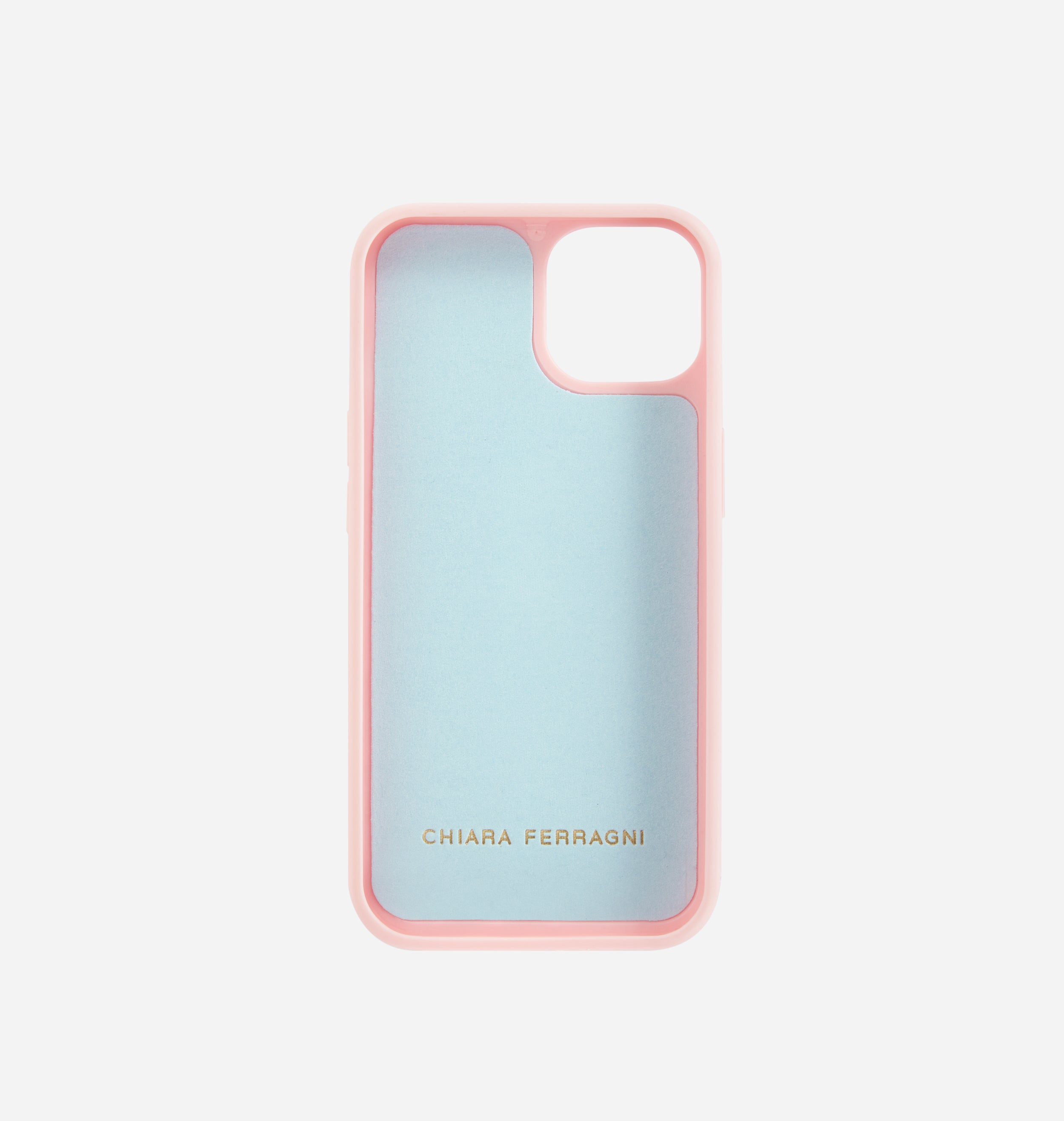 Cover iPhone 13 con glitter rosa e applicazione Eye star in metallo e strass.
