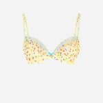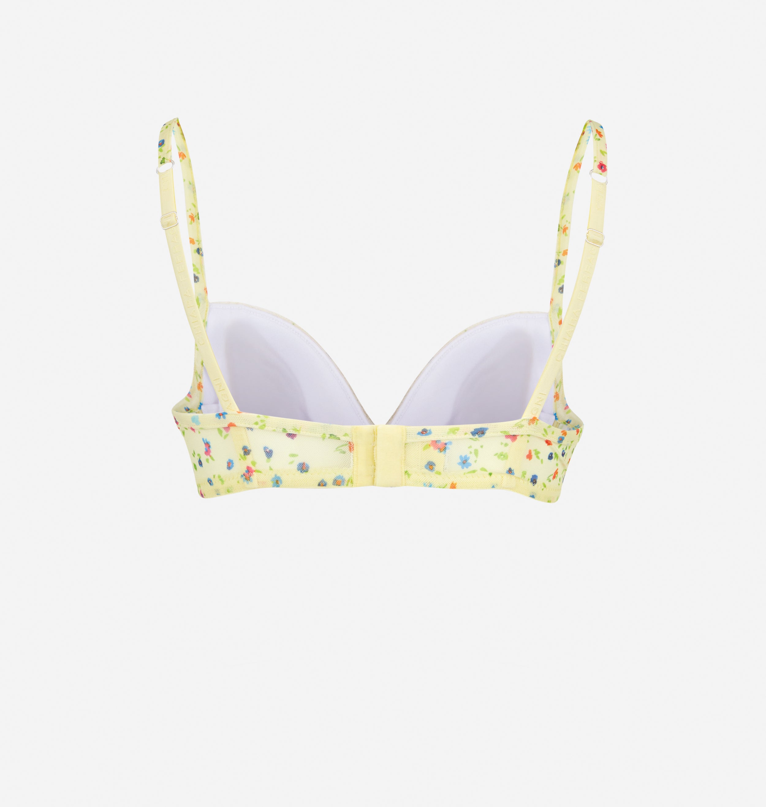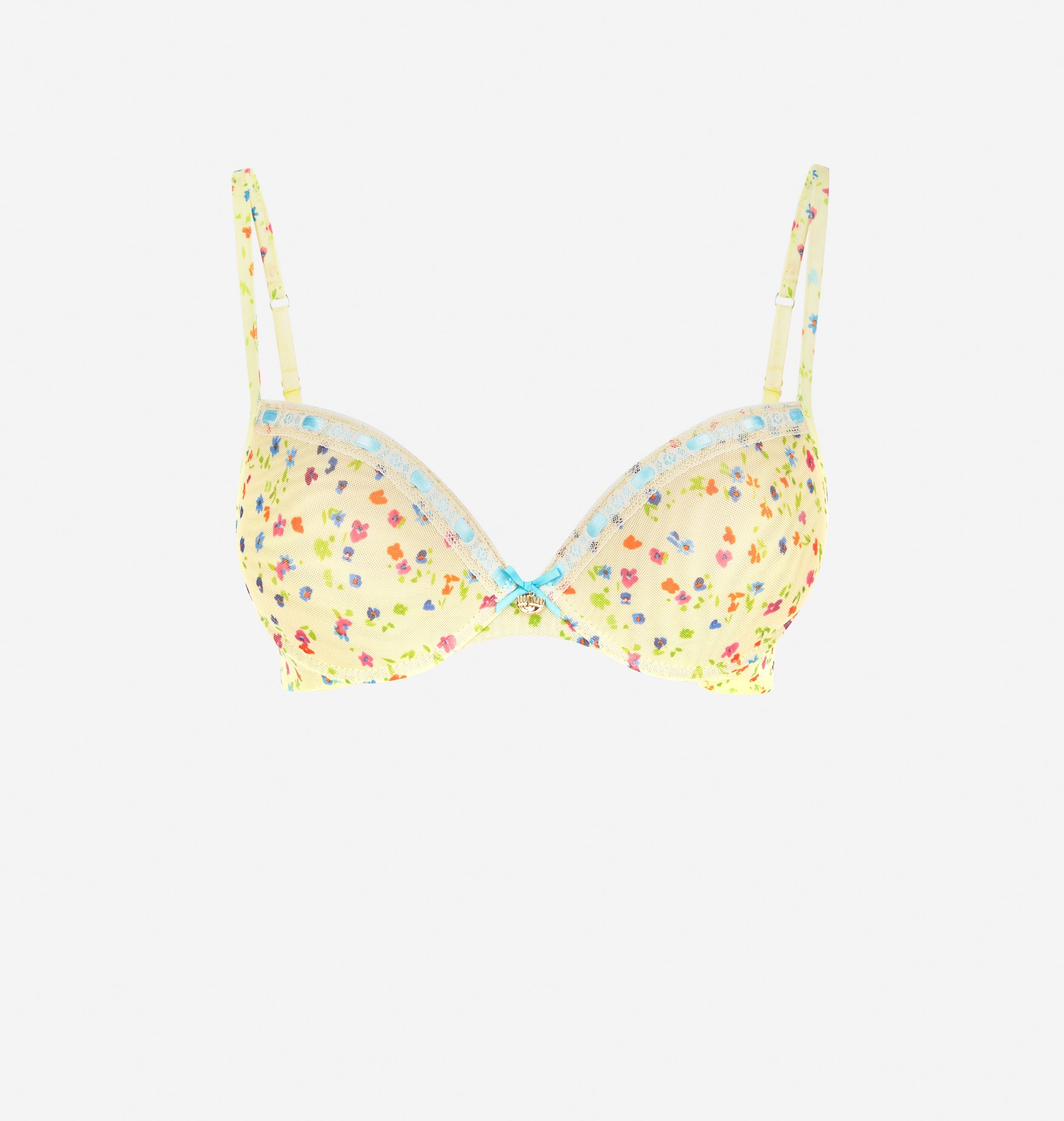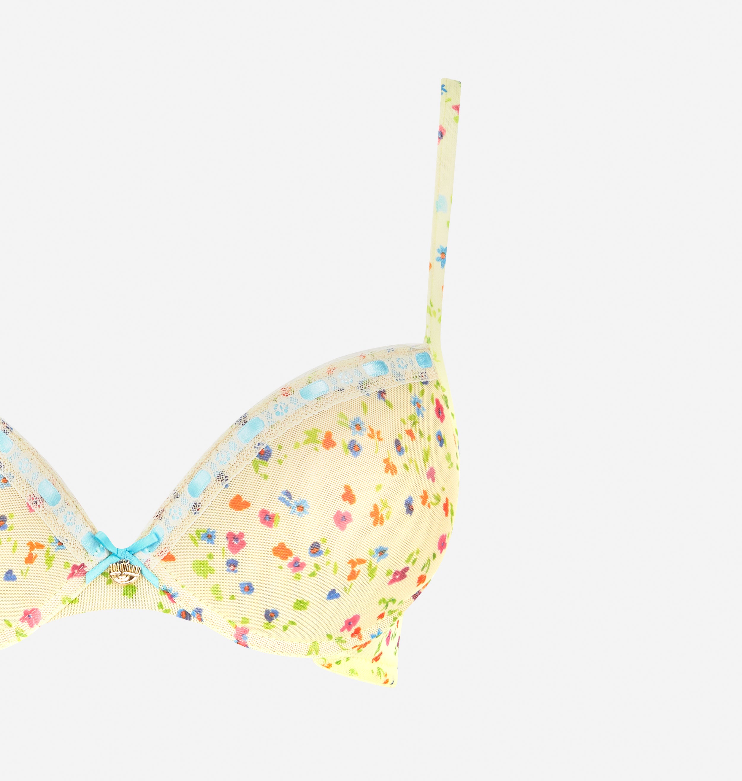 Reggiseno push-up giallo con micro stampa floreale e fiocchetto azzurro con Eye Charm