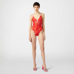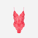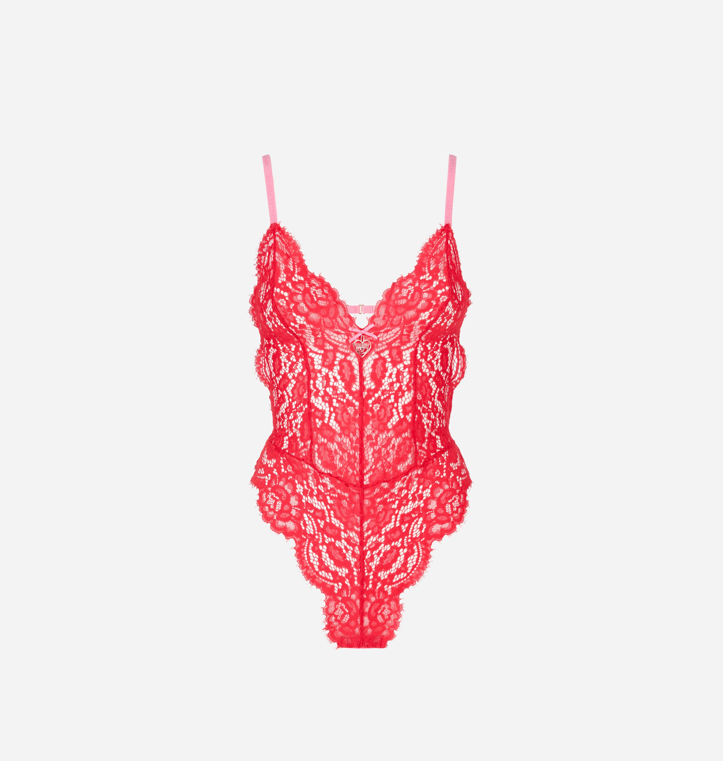 Body in pizzo rosso con spalline rosa e Eye Charm centrale