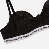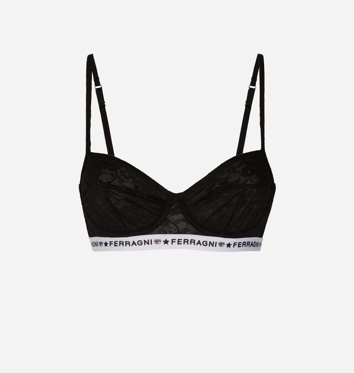 Balconcino in pizzo nero con banda elastica Ferragni Eye Star.