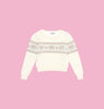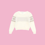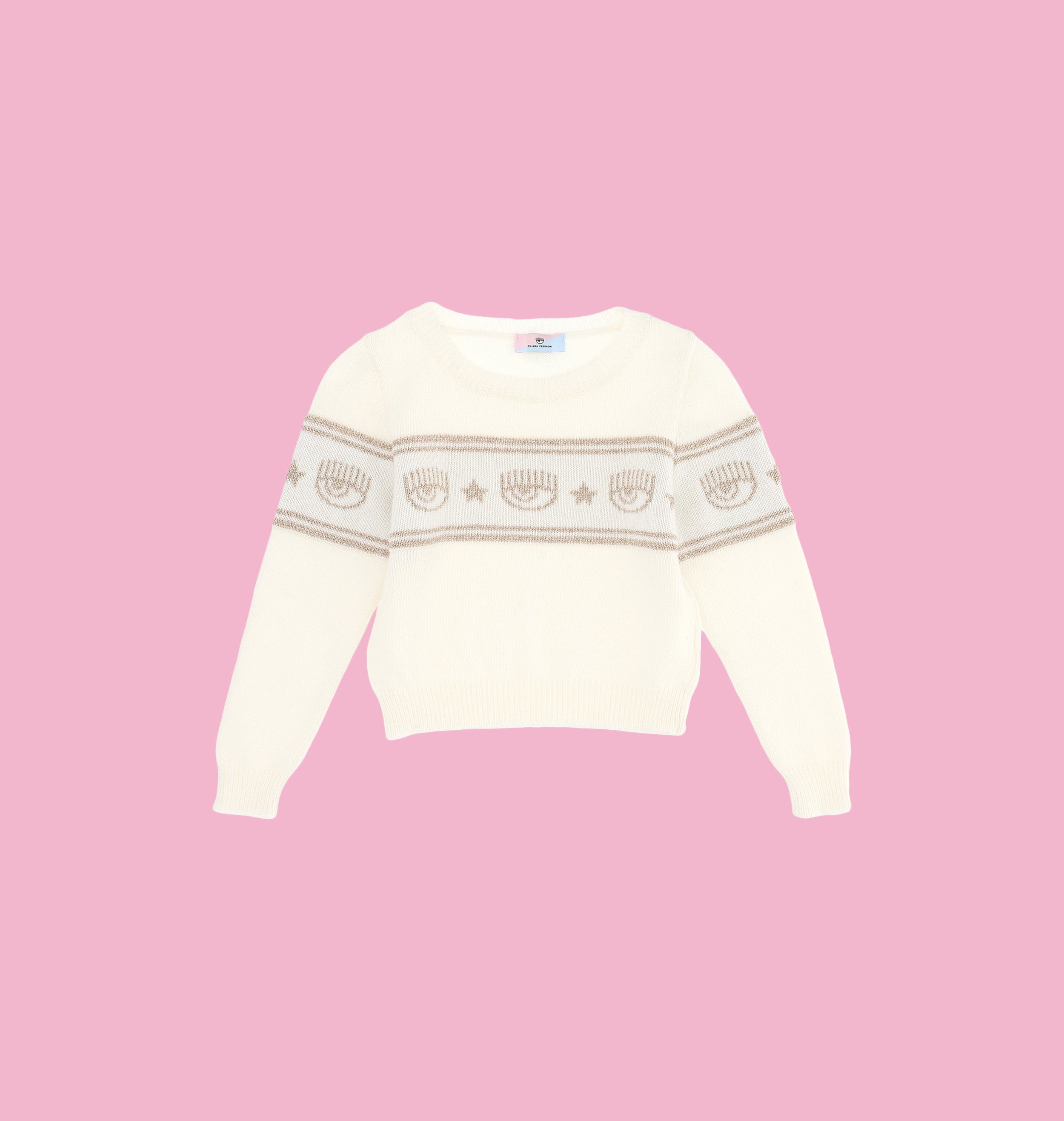 Caldo maglioncino girocollo in un misto di lana e cashmere, decorato con banda Maxi Logomania in Lurex sul davanti, sulla schiena e sulle maniche
