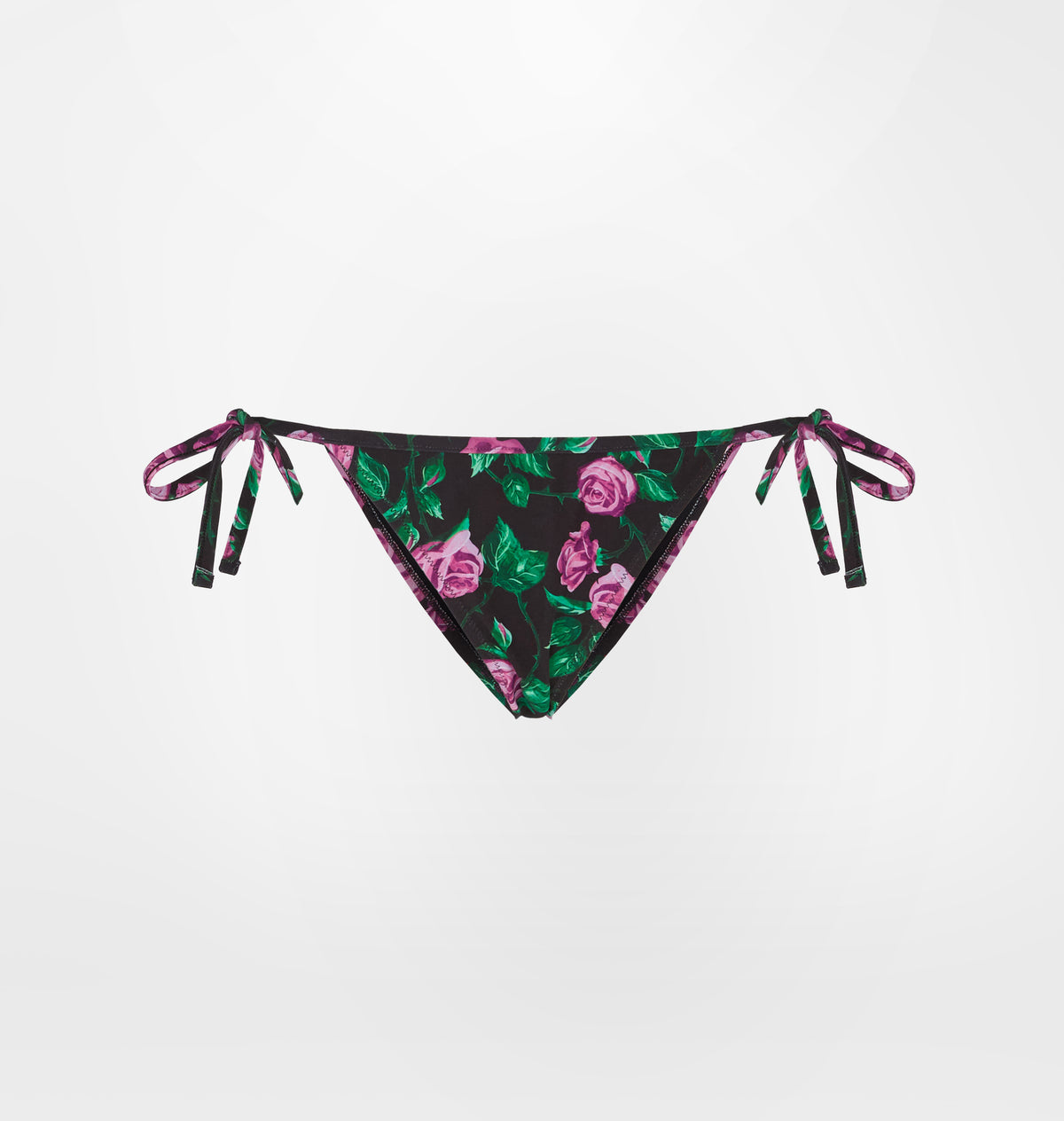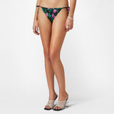 Slip bikini nero in stampa Roses con laccetti.