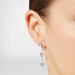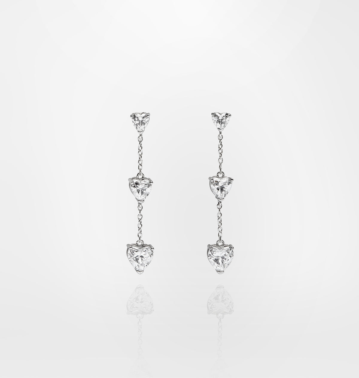 Orecchini pendenti realizzati in argento 925 con zirconi bianchi a forma di cuore.