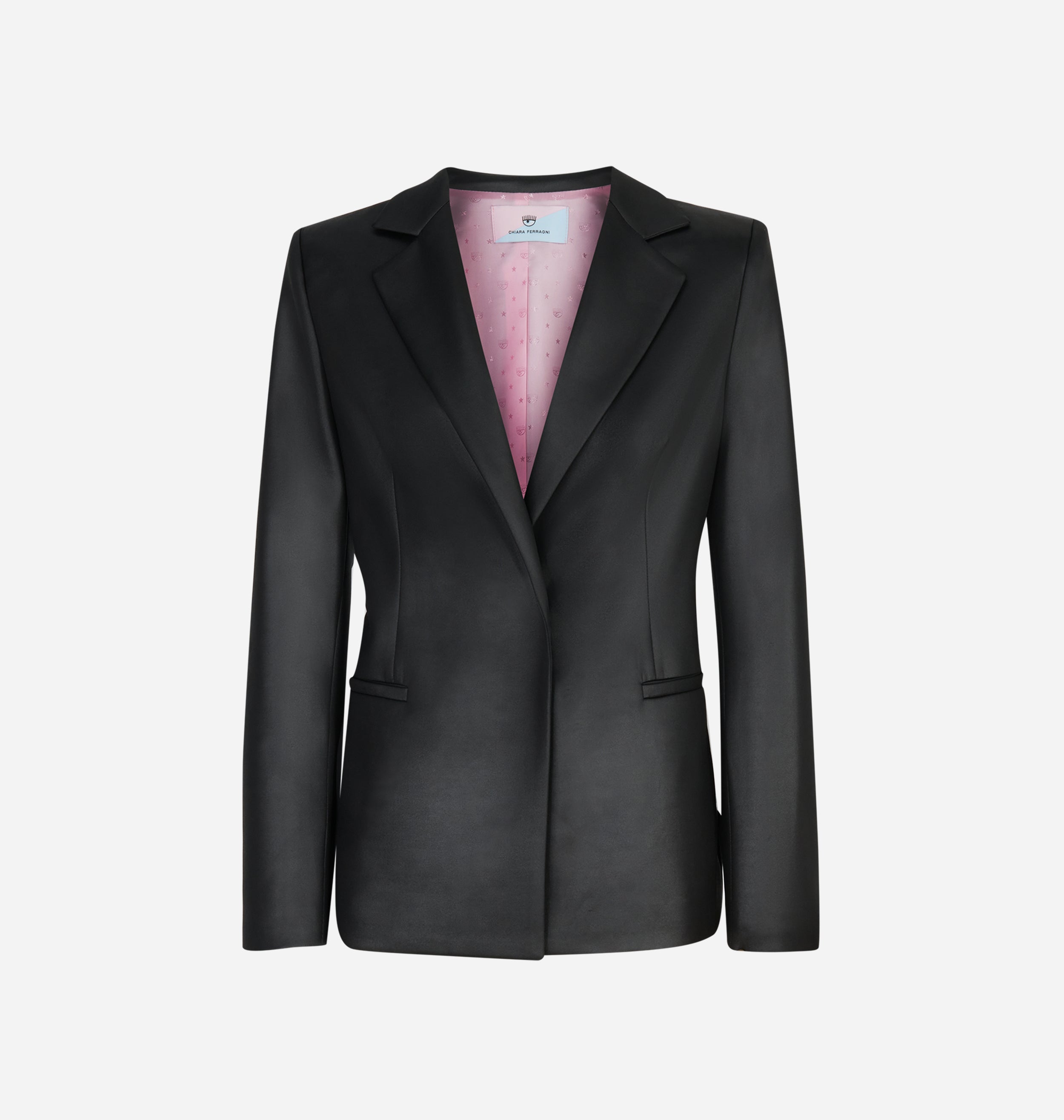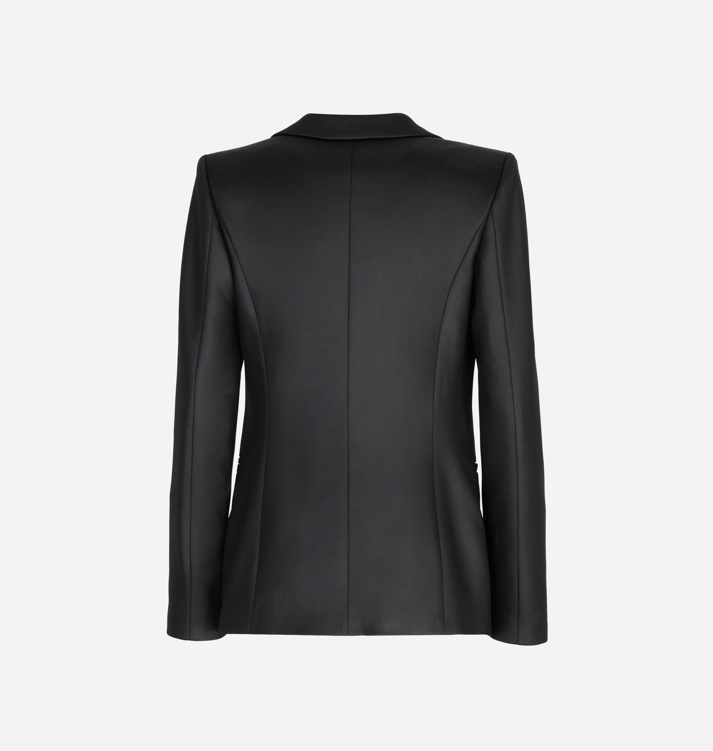Regular fit jacket in black technical jersey, single breasted with one hidden press button