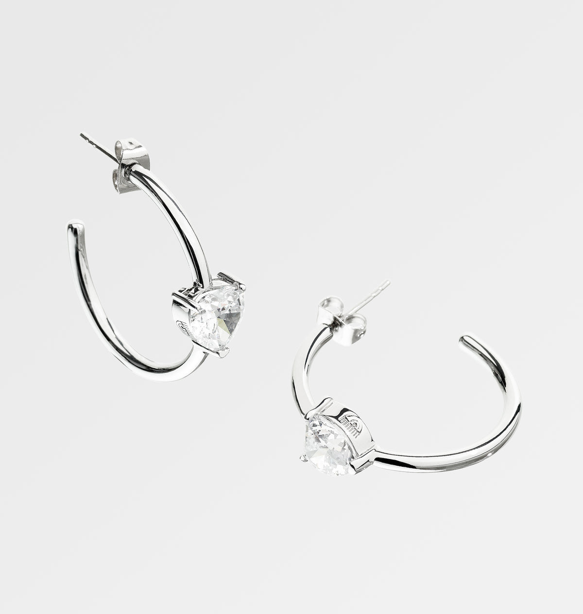 Rhodium plated earrings with white heart shaped zircon.